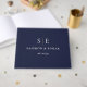 Livro De Visitas Casamento de Monograma Azul Marinho e Dourado