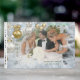 Ouro espumante e decorações de árvores prateadas cercadas por folhagem festiva verde-sábio, com neve recém-caída numa terra maravilhosa de inverno, para o seu dia de casamento temático de Natal.