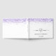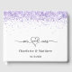 Um fundo branco na moda com poeira brilhante púrpura. Sr. e Sra. com coração. Personalize e adicione seus nomes e data de casamento. Personalize e adicione seu texto na coluna.