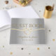 Livro de visitas de casamento simples, luxuoso, minimalista, prata e ouro com coração de corda elegante e caligrafia moderna.