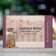 Livro de convidados personalizados com um tema rústico do país. Uma lata velha de leite enferrujante com uma flor de laranja bonito ao lado. Trigo e papoilas vermelhas desbotadas no fundo colocadas sobre um painel de madeira esmaecido. Personalize com os nomes dos casais e a data do casamento.