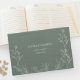 Apresentamos o nosso livro de convidados minimalista e moderado, com uma saga serena verde enfeitiçada com um design floral simples, mas elegante. A delicada caligrafia branca acrescenta um toque de sofisticação a este Livro Convidado do Mar dos Verdes , fazer que seja a escolha ideal para uma celebração moderna do casamento. A design romântica e minimalista mostra uma magnífica e elegante tipografia colocada contra um fundo verde-marinho, criando um olhar limpo e na moda para o seu dia especial. Selecione o tipo de papel como desejar.