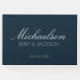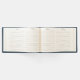 Guestbook de casamento azul-marinho moderno e chic em um design minimalista com texto branco de caligrafia/roteiro sobre fundo branco. Para obter ajuda com a personalização ou para produtos correspondentes, entre em contato conosco. Ficaríamos felizes em ajudar.