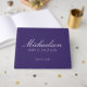 Guestbook de casamento roxo moderno e chico em uma design minimalista com texto branco de caligrafia/roteiro sobre fundo branco. Para obter ajuda com a personalização ou para produtos correspondentes, entre em contato conosco. Ficaríamos felizes em ajudar.