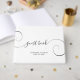 Crie seu próprio livro de hóspedes para a noiva e o noivo com uma elegante design de tipografia do estilo "livro de hóspedes" com rabos e título de trabalho extras. Personalize o fundo branco e as cores da fonte preta para corresponder à paleta de cores do casamento. Se você não quiser que a curva se enrole até o fundo, você pode mudar a coluna e a cor de fundo para branco... ou a cor escolhida.
