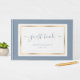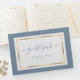 Elegante personalizou o livro de hóspedes de azul empoeirado e ouro com roteiro moderno. Personalizar facilmente online. Itens correspondentes disponíveis para complementar este moderno livro de hóspedes azul e dourado. Para pedidos personalizados, envie-nos uma mensagem através do bate-papo Zazzle.