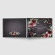 Design apresenta uma textura preta de quadro negro impressa para fundo com uma imagem geométrica dourada impressa coberta por um único verde elegante que consiste em eucalipto e outras folhas/galhos. Design também apresenta rosa vermelha e flores de pedófilos e outros elementos florais cor-de-rosa para barrar para acrescentar uma decoração única.