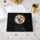 Um fundo na moda preto com uma falso armação prateada. Adicione seus nomes, data de casamento, uma foto. Coloque seu próprio texto.