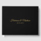personalize o texto clássico elegante do roteiro de casamento Letras de ouro do Livro Convidado, fundo preto. Verifique o resto da coleção para itens de coordenação correspondentes.