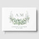 Este elegante monograma de convidados faz uma adorável manutenção do casamento, e apresenta uma coroa de eucalipto verde que enquadra os monogramas da noiva e do noivo, com o nome e a data do casamento por baixo. Na parte de trás está uma textura verde aquosa macia.