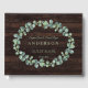 Design moderno com ramificações de aquarelas eucalipto, coroa, sobre fundo de celeiro de madeira; nas iniciais traseiras e no divisor de verde ao redor do eucalipto. Use Personalizar para adicionar suas informações. Para ver os itens correspondentes, visite minha Coleção Eucalyptus Greenery.