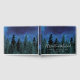 Pine Trees Watercolor Rustic Evergreen Wedding Guest Book - apresenta uma cor d'água estrelada céu noturno com pinheiros eververdes em vários tons de verde com um layout de texto elegante. Consulte produtos correspondentes na coleção encontrada nesta página.