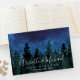 Pine Trees Watercolor Rustic Evergreen Wedding Guest Book - apresenta uma cor d'água estrelada céu noturno com pinheiros eververdes em vários tons de verde com um layout de texto elegante. Consulte produtos correspondentes na coleção encontrada nesta página.