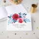 Livro De Visitas Casamento Floral Azul Vermelho Moderno com Aquarel