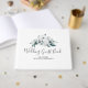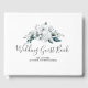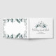 Flores brancas de aquarela e livro de convidados de casamento verde
