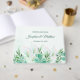 Este livro de hóspedes mostra flores brancas de lírio calla e folhagem em um estilo aquarela. Você pode personalizá-lo com noiva e nomes de noivos e data de casamento, tanto na frente do cobrir quanto na coluna. Este livro de hóspedes faz parte de uma coleção que inclui uma gama de cheios de papelaria de casamento como convites para casamento, cartões de resposta, cartões de informação, etiquetas de endereços, selos postais, envelopes, caixas de favores, cartões de boas-vindas, programas, menus, presentes de noiva e muito mais. Visite as páginas de coleta em nossa loja para ver a gama de produtos de cheio que você pode personalizar para o seu casamento.