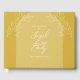 Este livro de hóspedes do casamento é mostrado num estilo de arco e apresenta um design floral. Mostrado em cor dourada. Excelente dia de papelaria para o seu casamento. Personalize o texto na parte frontal e altere o texto no painel lateral. Use a modelo para criar seu próprio livro de hóspedes florais do estilo arco de ouro.