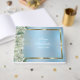 Design apresenta um buquê de belo floral branco e um fundo brilhante azul cintilante. Ele pode ser personalizado com suas próprias informações.