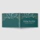 Livro de hóspedes de teal elegante e vintage com flores de hálito de bebê dourado
