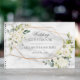 Moderno e moderno, este design de giz de casamento apresenta um falso geométrico de cobre embelezado com as disposições florais florais de branco de água e eucalipto verde, sobre uma textura de mármore branco sujo. Convidados Elegantes de Direitos Autorais. Todos os direitos reservados.