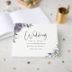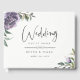 Flores violetas roxas de aquarela e vegetação botânica do jardim, livro de convidados de casamento.