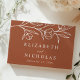 Elegante livro de hóspedes florais com flores brancas esboçadas e folhas perto do topo do design com fundo de terracota. Personalize o livro de convidados botânicos com seus nomes e detalhes de casamento abaixo. Adicione texto personalizado à coluna, como seus nomes, data do casamento, etc. A parte de trás do livro floral de hóspedes apresenta a sua fotografia horizontal do noivado. Projetado para coordenar com a nossa coleção de casamento Floral.