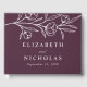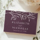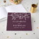 Elegante livro de hóspedes florais com flores brancas esboçadas e folhas perto do topo do design com fundo roxo escuro. Personalize o livro de convidados botânicos com seus nomes e detalhes de casamento abaixo. Adicione texto personalizado à coluna, como seus nomes, data do casamento, etc. A parte de trás do livro floral de hóspedes apresenta a sua fotografia horizontal do noivado. Projetado para coordenar com a nossa coleção de casamento Floral.