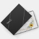 O design apresenta um verde aquoso, girassóis, elementos de ouro impressos e folhas botânicas láteas sobre uma moldura geométrica dourada impressa. A parte de trás apresenta um buquê verde e girassol.