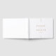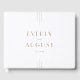Este livro de convidados da Everly Collection apresenta um design branco minimalista com linhas de deco de arte delgadas e tipo de ouro quente. O layout centralizado e o espaçamento generoso oferecem uma aparência polida e moderna. Personalize o cobrir frontal com os nomes do casal e a data do casamento.