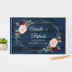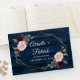 Marinho Blue Burgundy Dourado Blush Pink Country Livro de Convidados de Casamento - apresenta um celeiro azul-marinho escuro ou fundo de grãos de madeira decorado com uma estrutura geométrica de ouro impressa que é cortada com elementos florais e verdes em tons de marinho, rosa, burgundy e muito mais. Exibir a coleção correspondente nesta página para localizar itens de coordenação.