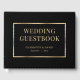 Livro de hóspedes de casamento preto e ouro. Personalize facilmente este modelo on-line. Os itens disponíveis para complementar este livro de convidados de casamento preto e ouro moderno.