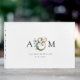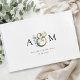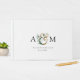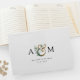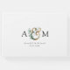 Moderno, monograma, elegante ampersor de eucalipto e livro de convidados com seus monogramas, nomes e data. Basta editar seu produto em alguns minutos. Você pode alterar a fonte/tamanho/cor e a posição usando "mais personalização".