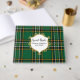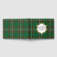 O livro de convidados irlandês sobre o tema do casamento feito no padrão verde, preto, branco e amarelo da Xadrez nacional irlandesa. Uma placa decorativa, no cobrir da frente, tem texto personalizado pronto para personalizar o seu dia especial.