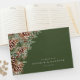 Capture as memórias do seu dia especial com o nosso livro de convidados de casamento verde, parte da "Suíte Elegante de Casamento Verde Pinecone de inverno". Apresentando verde pintado à mão e compros de pinheiro, este livro de hóspedes fornece uma manutenção coesa e elegante, assegurando que suas memórias sejam lindamente preservadas.