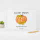 Livro de Convidados do casamento outono com abóbora de cor laranja em fundo branco com girassóis amarelos, perfeito para casamentos outono, casamentos de outono, casamentos de campo com primavera rústico, chás de panela e chás casais.