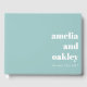 Capture memórias prezadas com este elegante livro de convidados de casamento, apresentando um design minimalista com um cobrir azul aqua macio e uma tipografia clássica. Perfeito para os hóspedes deixarem mensagens e desejos sinceros, este personalizável manejo adiciona um toque atencioso ao dia do seu casamento e se torna uma lembrança tesourada por anos. Personalize com nomes e data de casamento para um toque único de final.
