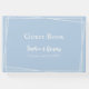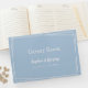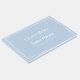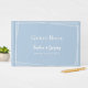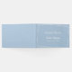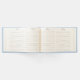 Um bonito Livro de Convidados de casamento em azul claro, com tipografia de na moda para os nomes dos casais. O livro exibe um design geométrico nas bordas, criando um efeito elegante de quadro. Personalize este adorável livro para o seu dia especial clicando no botão Personalizar.
