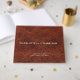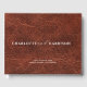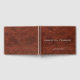 Um simples monograma de nome de casamento elegante com data e localização, num fundo de couro falso de cor castanha. Simples elegância clássica. O livro de guardas de assinatura de convidado de casamento. Elegante tipo de serifa antigo modelado no estilo de gravação romano, com suporte de guião.