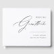 Procurando um livro de convidados de casamento simples e elegante? Não olhe mais do que este design personalizado com tipografia de script clássico e chic em preto e branco. Esta revista moderna é a maneira perfeita de capturar memórias do seu dia especial, seja para a sua cerimônia de casamento ou recepção. E com seu design elegante e neutro, também é uma opção excelente para chás de fraldas, aniversários e outras ocasiões especiais. Simplesmente personalize com seus nomes e detalhes, e aproveite a bela manutenção por anos. Não se esqueça de checar o resto dos itens correspondentes neste design de script chic abstrato boêmico minimalista!