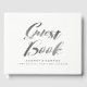 Este livro de hóspedes paisagístico, de capa dura, com uma fonte moderna de caligrafia, é impresso em cinzas prateadas colocadas sobre um fundo branco e será totalmente personalizado com o seu nome, data/local do casamento e até mesmo uma mensagem pessoal ou uma citação no verso.