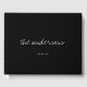 Convide seus convidados para compartilhar seus desejos e sabedoria com este livro de hóspedes simples e moderno em preto elegante. Design apresenta seu nome ou nomes em letras brancas de estilo manuscrito, com sua data de casamento embaixo. Personalize a coluna também com sua escolha de texto personalizado.