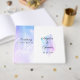 Adicione seu toque pessoal a este estilo mínimo, azul pálido e design original de cor d'água roxa para o seu dia especial de casamento. Consulte a coleção de itens coordenados para completar a aparência. Arte copyright Ann Powell todos os direitos reservados.