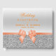 Um livro de convidados elegante e brilhante com um arco de coral romântico clássico e uma imagem de fita num bonito brilho prateado brilhante e fundo de gradiente prateado. Todo texto é totalmente personalizável para atender às suas necessidades. Se precisar de ajuda para personalizar o seu produto ou se quiser fazer a correspondência de produtos, entre em contato comigo através da minha loja e eu ficarei muito feliz em ajudá-lo.