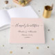 Feliz Para Sempre" Este Simples Livro de Convidados de Casamento Rosa, Luz Bush, é uma maneira elegante e moderna de capturar as memórias do seu dia especial. O livro de hóspedes é perfeitamente personalizável, permitindo-vos personalizar o cobrir com os nomes da noiva e do noivo e a data do casamento, fazer-o como uma manutenção significativa. A espinha do livro de hóspedes pode ser personalizada com os nomes dos casais e as datas de casamento numa fonte sutil e saborosa que melhora a elegância geral do livro. A inscrição das cinzas com um claro fundo cor-de-rosa-claro cria um olhar elegante e eterno que complementa vários temas de casamento, sejam eles rústicos, modernos ou minimalistas. Na parte de trás do livro de convidados, você pode exibir sua foto favorita, seja um noivado incrível ou um momento memorável de seu tempo juntos. Este toque pessoal torna o livro de hóspedes ainda mais significativo, convidando seus hóspedes a escrever seus bons desejos e mensagens em um espaço lindo e personalizado. A design e o layout do livro de convidados criam uma impressão duradoura, oferecendo um lugar para coletar notas sentidas de seus entes queridos e, ao mesmo tempo, mostrar sua única história de amor.