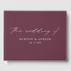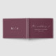 Livro de convidados elegante com "o casamento de", exibido num moderno roteiro de caligrafia branca sobre um fundo roxo. Personalize a frente do simples livro de convidados do casamento com seus nomes e data do casamento. A parte de trás do livro de hóspedes roxo mostra as suas iniciais do monograma. Adicione seu nome casado e data de casamento à espinha do livro de hóspedes.