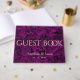 Púrpura elegante, simples, elegante, única e marmoreada em combinação com letras de ouro sofisticadas. Elegante, na moda, adorável livro de convidados de casamento.