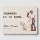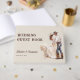 Este design do livro de hóspedes do casamento é a combinação perfeita do charme do rancho Ocidental e da elegância do boho, criando uma apresentação convidativa e memorável para o seu dia especial. A ilustração do casal acrescenta um toque único e animador que os convidados certamente se lembrarão.