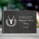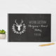 Livro de hóspedes preto-e-branco com um olhar rústico com a cabeça e os chifres de uma coroa de dentro, impressos para parecerem desenhados em giz no quadro. Personalize com seus nomes e data do casamento.
