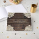 Livro de Visitas de Casamento Rústico de Madeira e Renda Romântico e Elegante