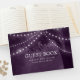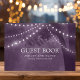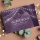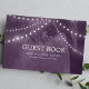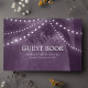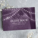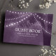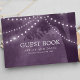 Capture memórias queridas do seu casamento rústico com este livro de hóspedes encantador. Uma silhueta majestosa de árvore enfeitada com luzes de cordas brilhantes contra um pano de fundo roxo romântico define a cena para os desejos sinceros de seus convidados. Este livro de hóspedes tornar-se-á um bem-estar tesouro.